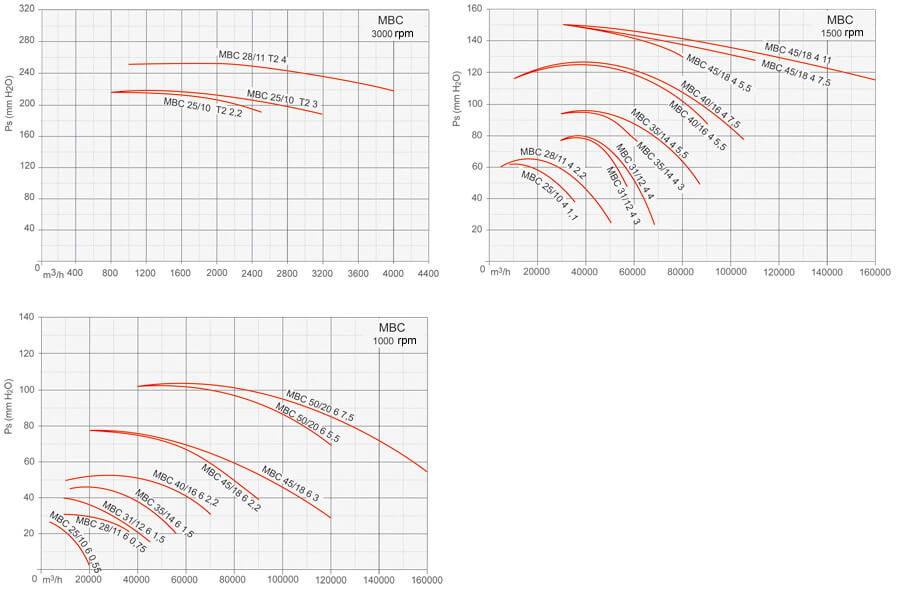 Centrifugal medium pressure, in metal housing, delivery range 1 670 to 11 500 m3/h.