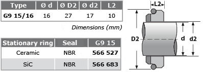 Mating ring for mechanical seal, 15 mm diameter shaft.